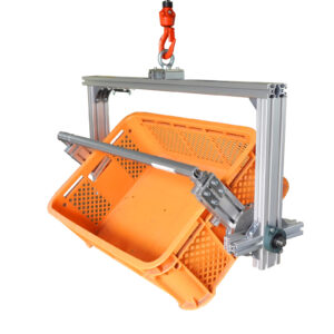 製品情報部品入替 反転機(二個の籠から一個のコンテナへ入替)